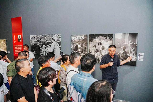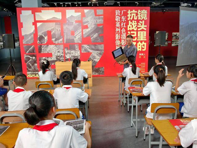 展览开幕前夕,策展人杜江在展厅里给东莞中学万江龙湾学校的学生上了一堂别开生面的思政课,以“讲课+导览”的形式,带领学生走进展览,深刻感知广东红色摄影家追求理想、不惧牺牲的精神,透过一幅幅珍贵的战地影像感悟抗战精神、汲取奋进力量。
